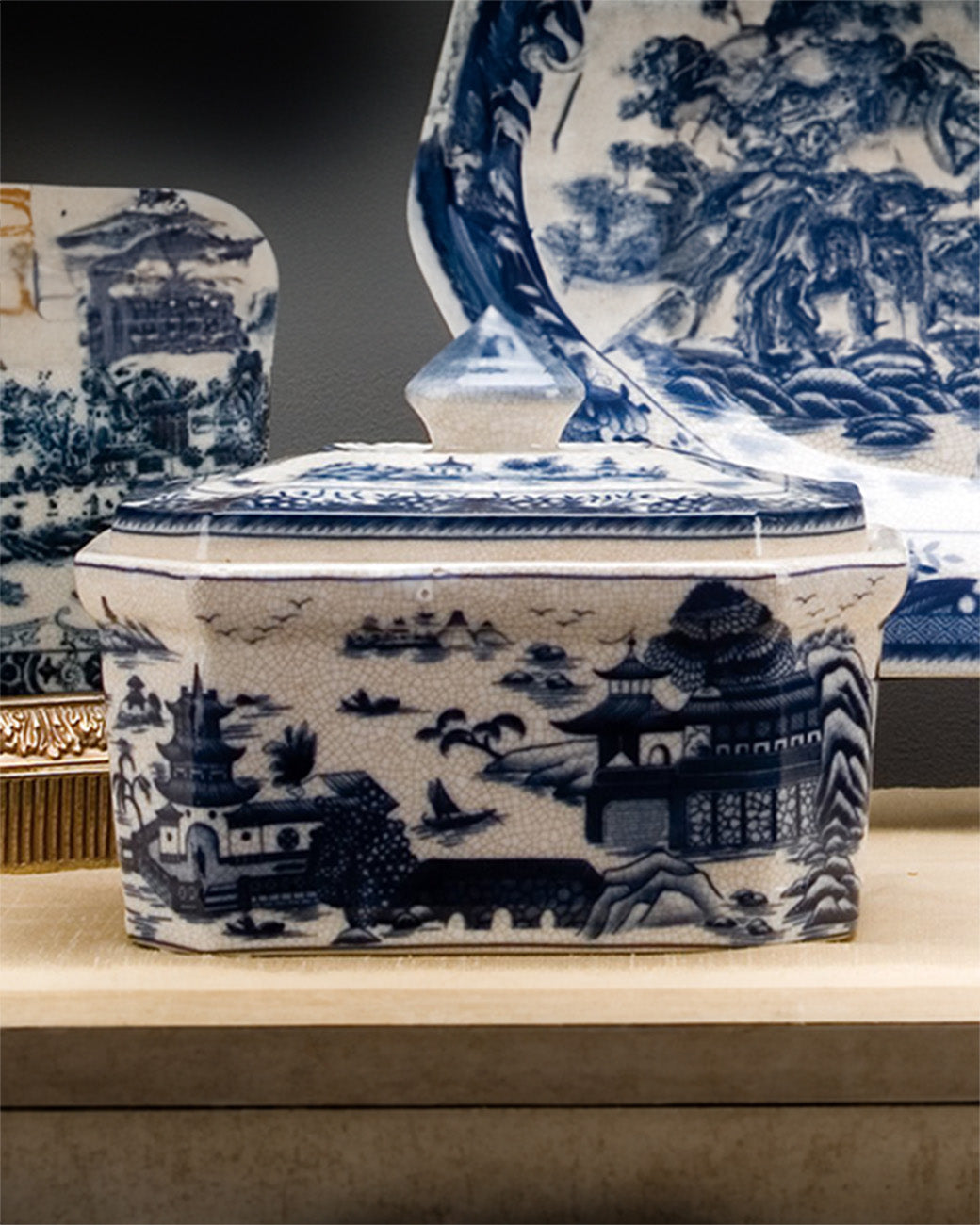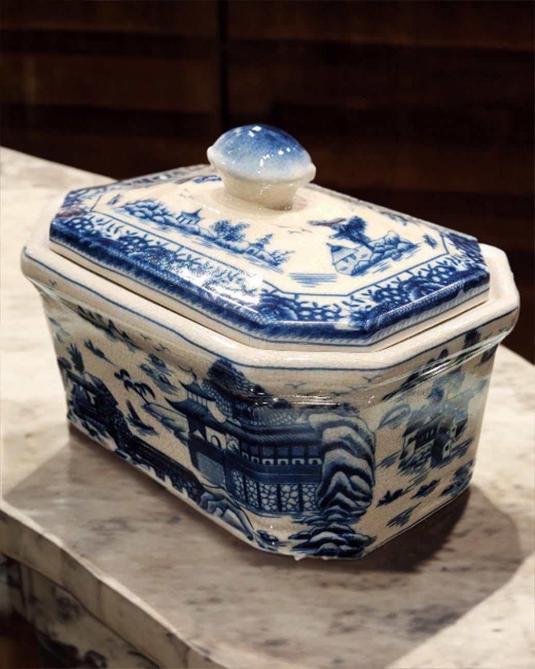 Blue and White Willow Lidded Box