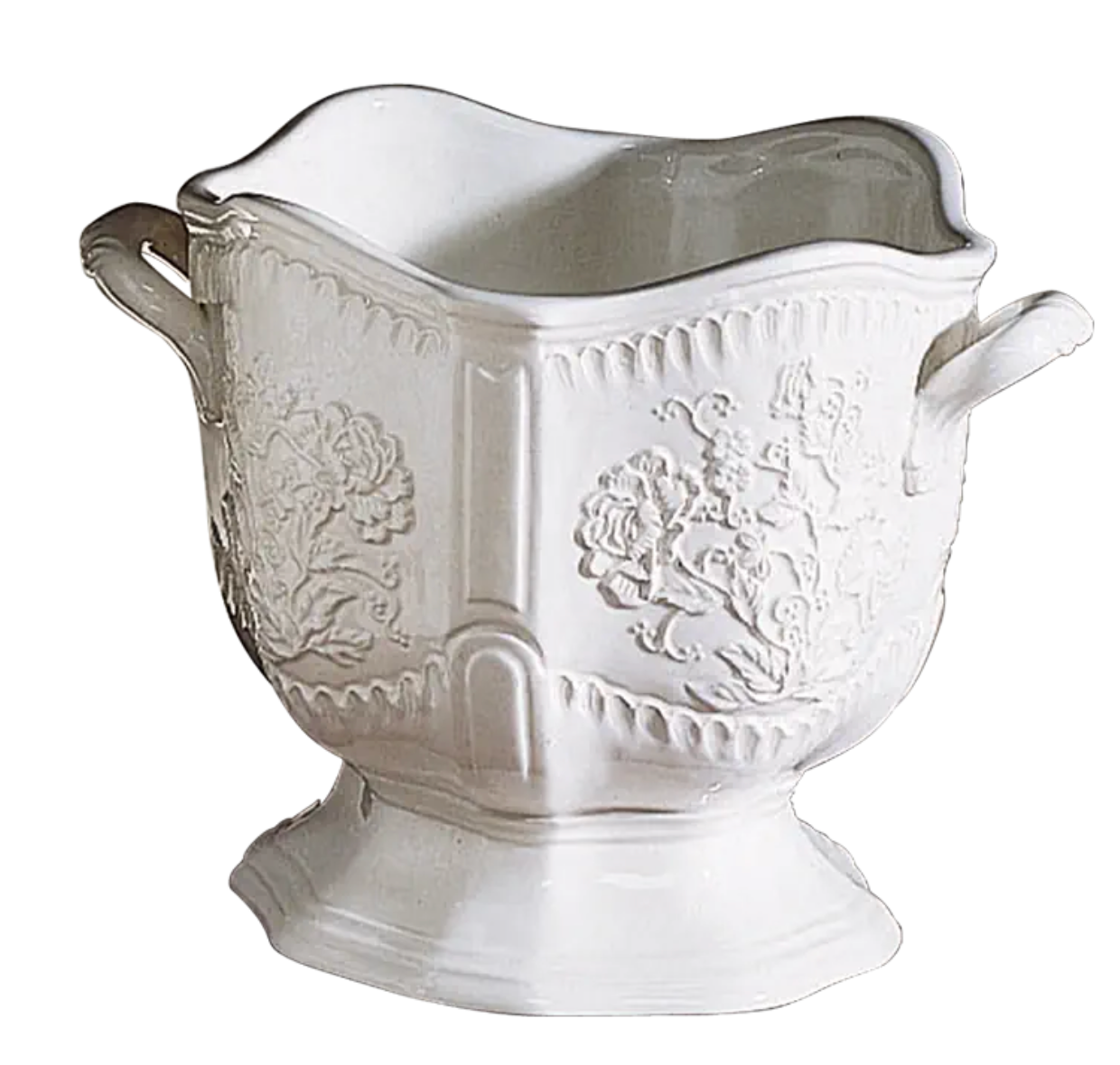 Chinese export for the West was often a riot of color and fantastic animal images. The Butterfly and the Mallard join our ever-popular Carp and Rooster shells and platters. These pieces feature matte burnished gold and accent flowers.